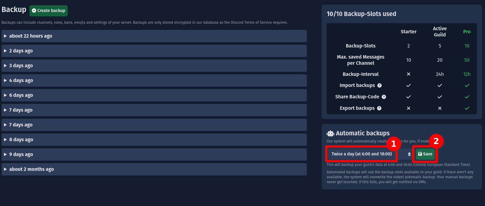 - Disable / enable Guild-Lock: Allows / Disallows your Backup to be restored on other servers. Please read more in the restore backups on other servers section.